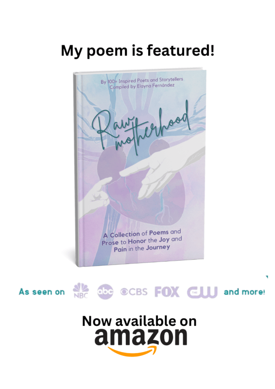 IT’S OFFICIAL!! I’m excited to share that I’ve been featured on ABC, FOX, NBC, CBS, CW, and other global media for my poem, “Whispers of Healing,” which is part of “Raw Motherhood: A Collection of Poems and Prose to Honor the Joy and Pain in the Journey.”